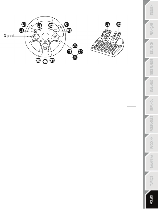 - Kierownica emuluje kontroler konsoli PS3 (konfigurację można zmienić w menu