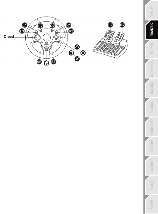 - Le volant émule la manette PS3 (accédez à Options/Manette pour modifier la