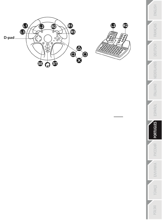 - O volante emula o controlador da PS3 (vá até Opções / Controlador / Gamepads para