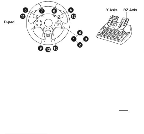 1. Regule o seletor PS3/PC (9) (situado na parte posterior do volante) para a posição PC.