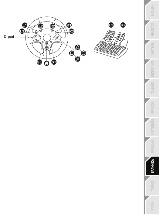 - Το τιμόνι μιμείται τον ελεγκτή του χειριστηρίου παιχνιδιών PS3 (μετάβαση στις