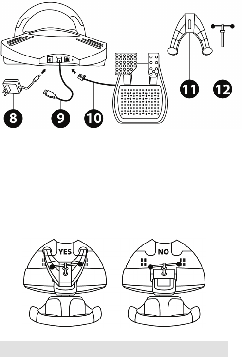 - - Yarış direksiyonunuzu bağlarken veya otomatik kalibrasyon safhasında: Kalibrasyon hatalarını engellemek için yarış direksiyonunu çevirmeyin, kalibrasyon safhasında hiçbir pedala veya düğmeye basmayın.