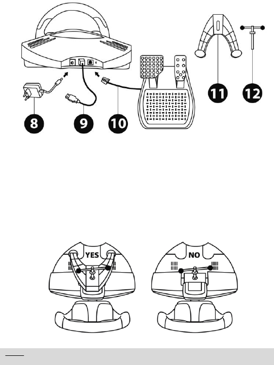 - - Yarış direksiyonunuzu bağlarken veya otomatik kalibrasyon safhasında: Kalibrasyon hatalarını engellemek için yarış direksiyonunu çevirmeyin, kalibrasyon safhasında hiçbir pedala veya düğmeye basmayın.