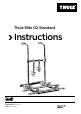 NL Technische gegevens Gewicht eenheid: ca. 10,1 kg. Max. toegestane belasting op het product: 60 kg. Veiligheidsinstructies 1. 2. * 3. 4. 5. 6. 7. 8. 9. 10. 11. 12. 13. 14. 15. * 16. 17. 18. 19. 20. 21. Thule wijst elke verantwoordelijkheid voor persoonlijk letsel en/of schade aan eigendommen en hieruit voortvloeiende vermogensschade die zijn veroorzaakt door foutieve montage of foutief gebruik van de hand.