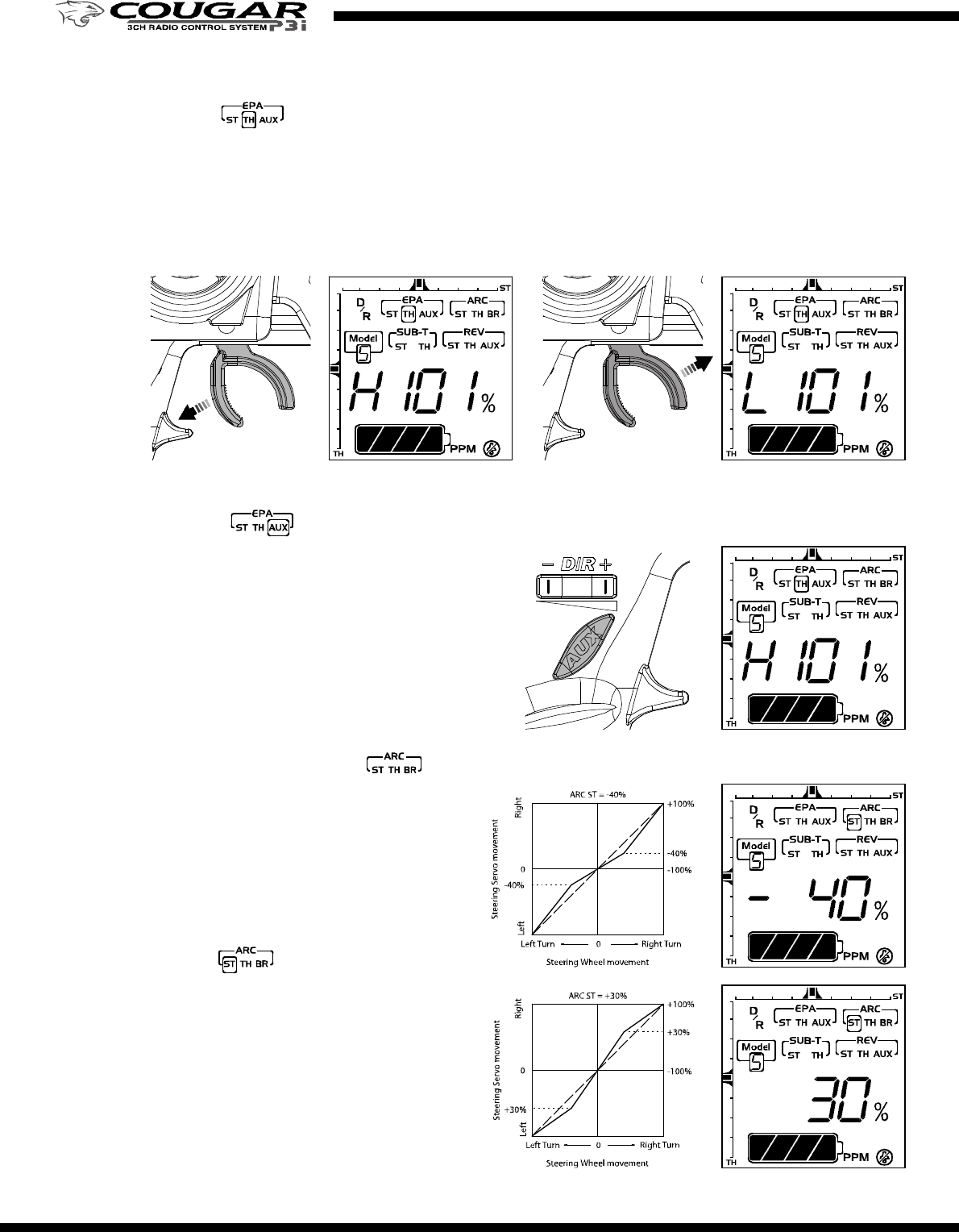 4. LCD Display: The Cougar transmitter adopts the “Easy-to-Read” display design. All the setting functions are