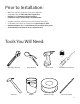 Parts List 1. Faucet Body Cuerpo del grifo 1 2. Rubber Gasket Junta de goma 3. Escutcheon Cover Plate Placa de Cubierta del Escudo 4. Mounting Plate Placa de montaje 2 3 4 5. Screws & Wall Anchors x4 Tornillos y anclajes de pared x4 5 x4 6 7 6. H1.5 Hex Wrench Llave hexagonal H1.5 7. H3.0 Hex Wrench Llave hexagonal H3.