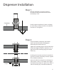 Dispenser Installation continued Step 3 Use a Phillips screwdriver to fully tighten the screws on either side of the mounting ring (6). 1⁄4” Gap Utilice un destornillador Phillips para apretar completamente los tornillos a ambos lados del anillo de montaje (6). Step 4 Screw the reservoir bottle (7) into the shank (2). Pour soap or lotion into the mouth of the shank until reservoir bottle is full. Seat the pump (1) in the shank. Atornille la botella del depósito (7) en el vástago (2).