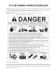 OPERATION STOP MOWING IF PASSERSBY ARE WITHIN 100 YARDS UNLESS: DANGER! - Front and Rear Deflectors are installed and in good, working condition; Mower Head is running close to and parallel to the ground without exposed Blades; Passersby are outside the existing thrown-object zone; All areas have been thoroughly inspected and all foreign material such as rocks, cans, glass, and general debris has been removed.