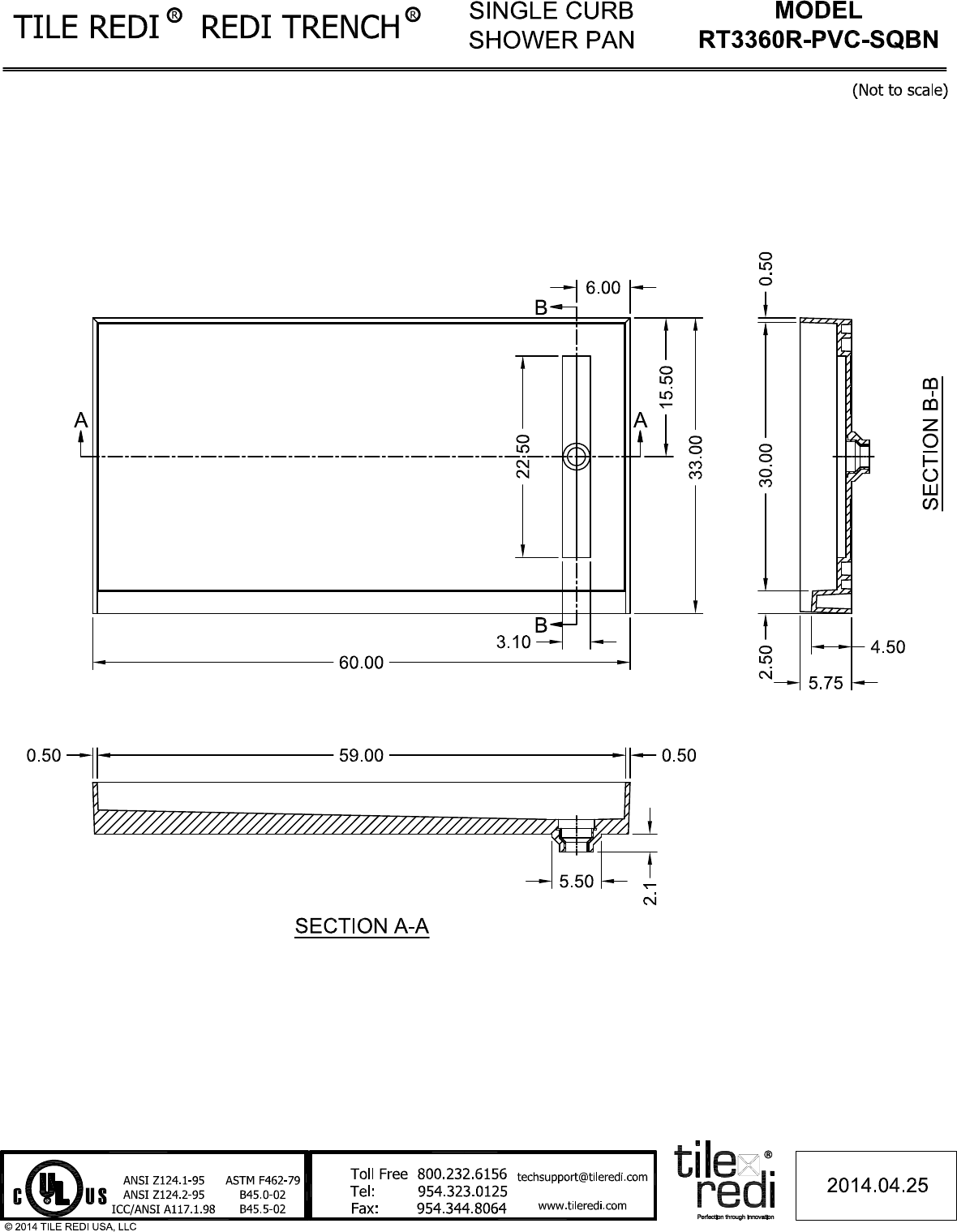Redi Trench 60"W x 33"D Shower Pan with Right Trench Drain