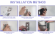 INSTALLATION METHOD Unscrew the 2 screw caps Mark two dots on the wall Drill two holes with an and remove the base panel with a pen and pad electric drill Hit the plastic anchors Position the mounting plate Position the base and tighten into the wall and fix 2 set screws the screw caps.