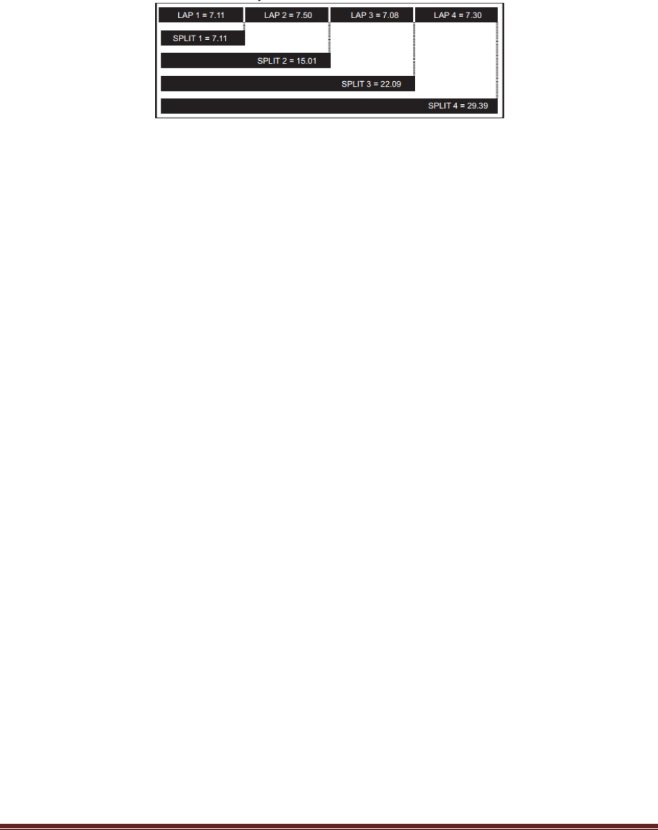 When splits are taken, times are frozen on the display for 10 seconds. Push the Mode button to