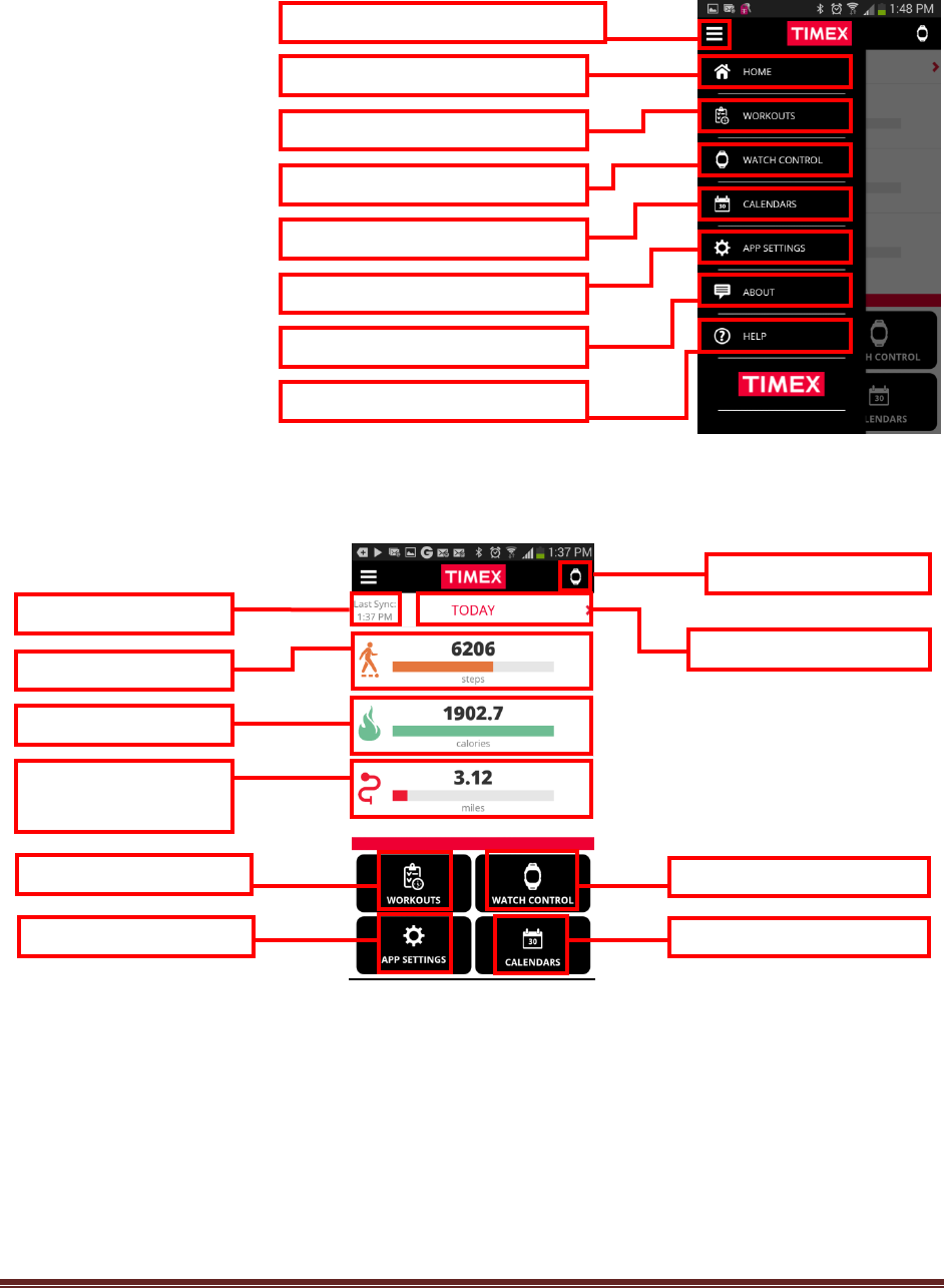 NOTE: Steps Taken, Calories Burned and Total Distance data is displayed above a color coded bar. This
