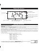 Display with Indicators Day Indicators Aux (Line In) Indicator AM Indicator KHz (AM) Frequency Indicator MHz (FM) Frequency Indicator Alarm 2 Indicator Alarm 1 Indicator Time / Year / Month / Date and Radio Frequency Display Low Battery Indicator Operating Instructions Setting The Time, The First Time IMPORTANT: The first time you connect your Redi-Set clock radio to the AC outlet the internal computer will automatically set the time correctly for the Eastern Time Zone, which is the initial default set