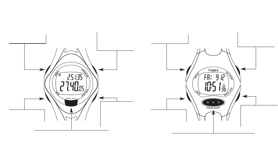 Knop START/SPLIT – Chronograaf of timer starten; naar