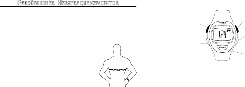 1. ON/OFF drücken, um den persönlichen Herzfrequenzmonitor zu aktivieren.