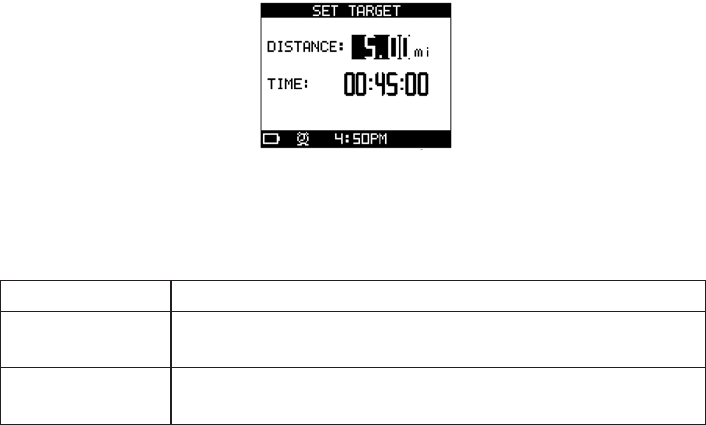2. q drücken, um „Zielwert: Zeit / Entf“ zu markieren. Drücken Sie dann 8 . Der Bildschirm „Zielwert