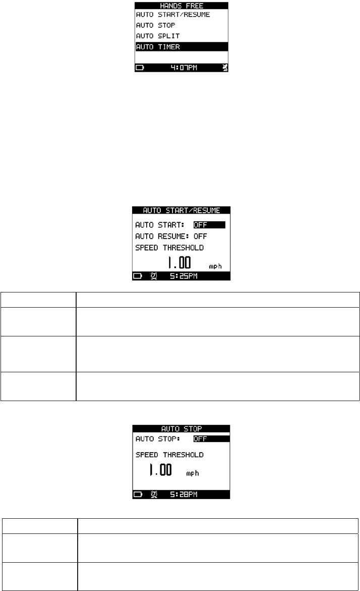 Die Freihandeinstellungen steuern automatisch Starten, Stoppen und Zwischenzeiten auf dem Chronograph.
