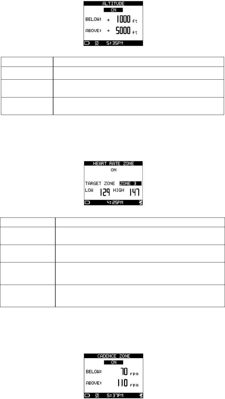 Höhenzone auf- oder absteigen, oder AUS, um den Höhenalarm zu deaktivieren.