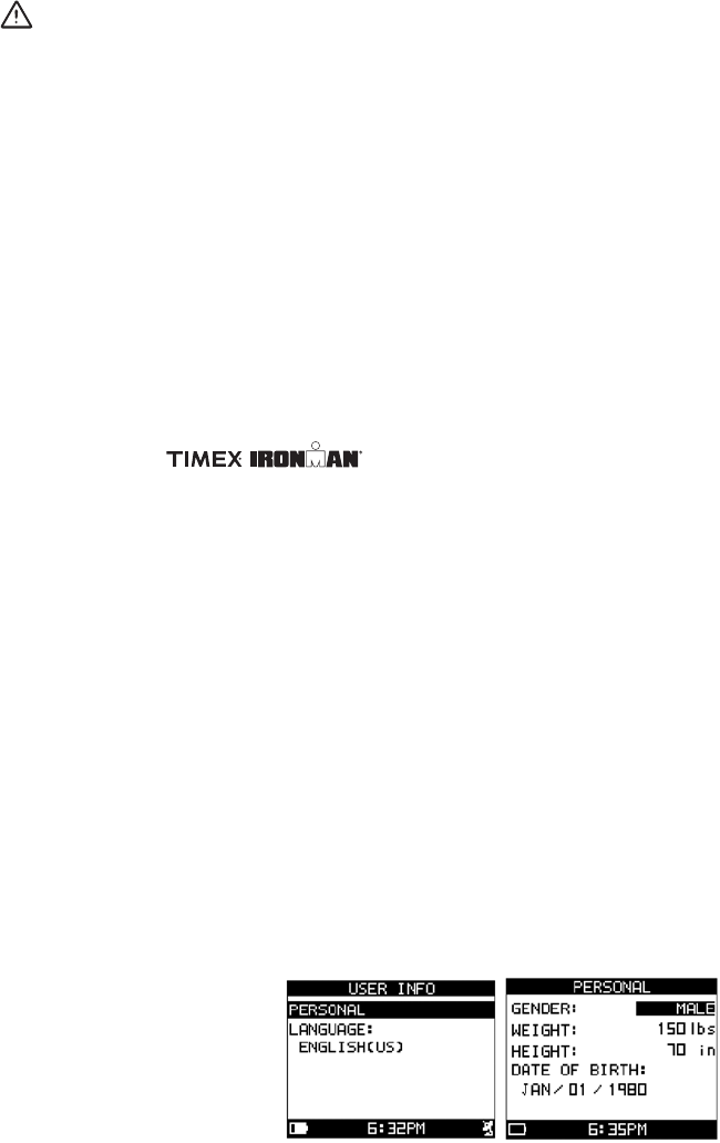 frequenza cardiaca, l’utente deve inserire le proprie informazioni personali relative a Sesso, Peso e Data di