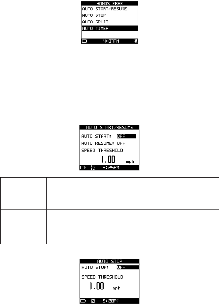 SOGLIA VELOCITÀ Inserire la velocità alla quale il cronografo inizia a scorrere automaticamente. Premere
