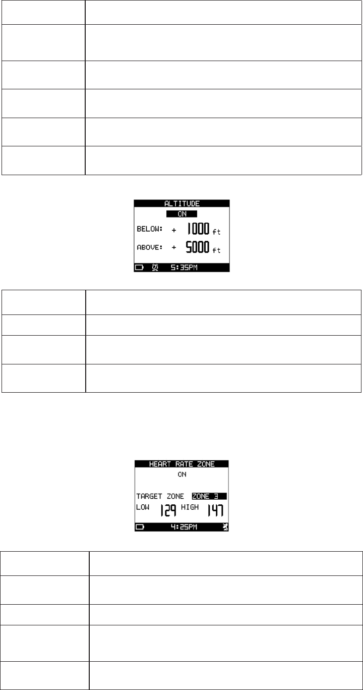 zona di altitudine selezionata, oppure OFF per disabilitare l’allerta di altitudine.