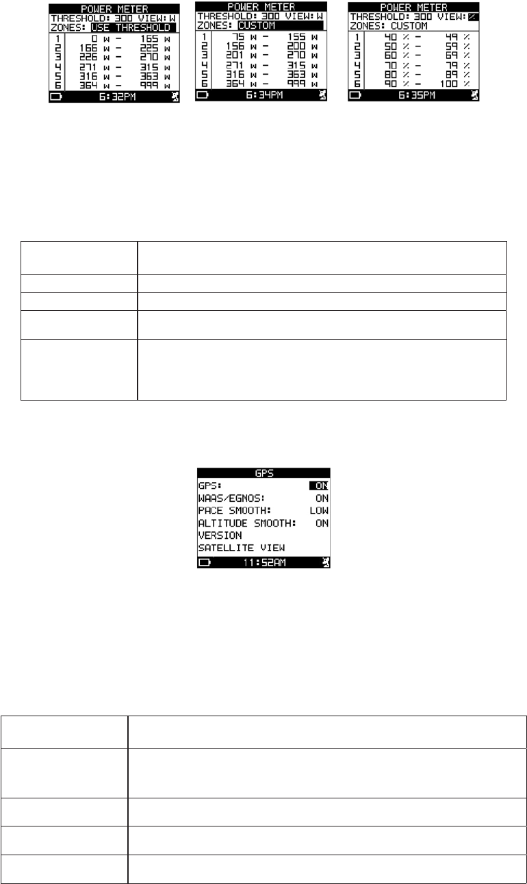VISUALIZZA Selezionare i watt o la % della soglia.