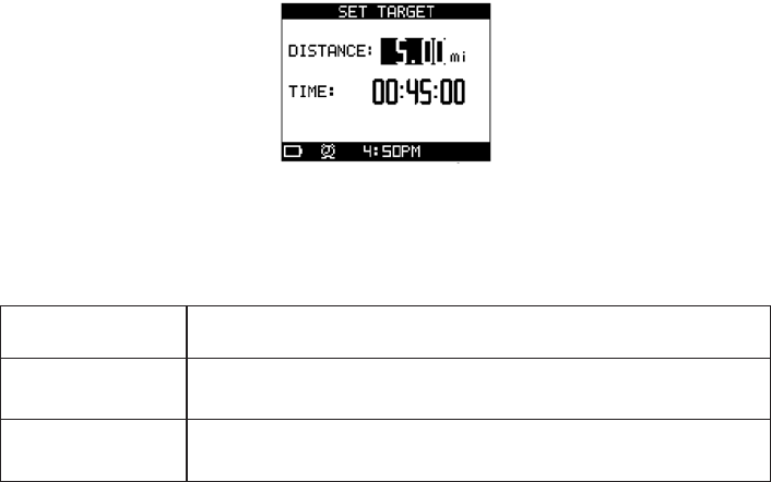 2. Pressione q para destacar Set Target:Time/Dist (ajustar alvo:tempo/distância); depois, pressione 8 .