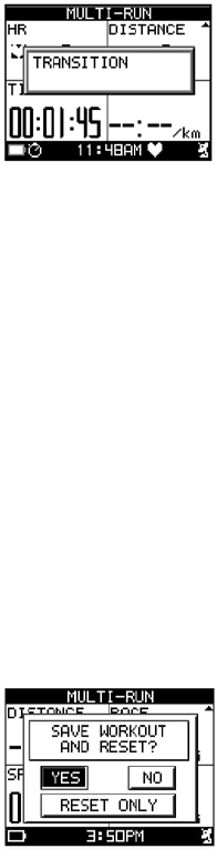 2. Pressione q. Aparece a tela SAVE WORKOUT AND RESET? (gravar exercício e reiniciar?).