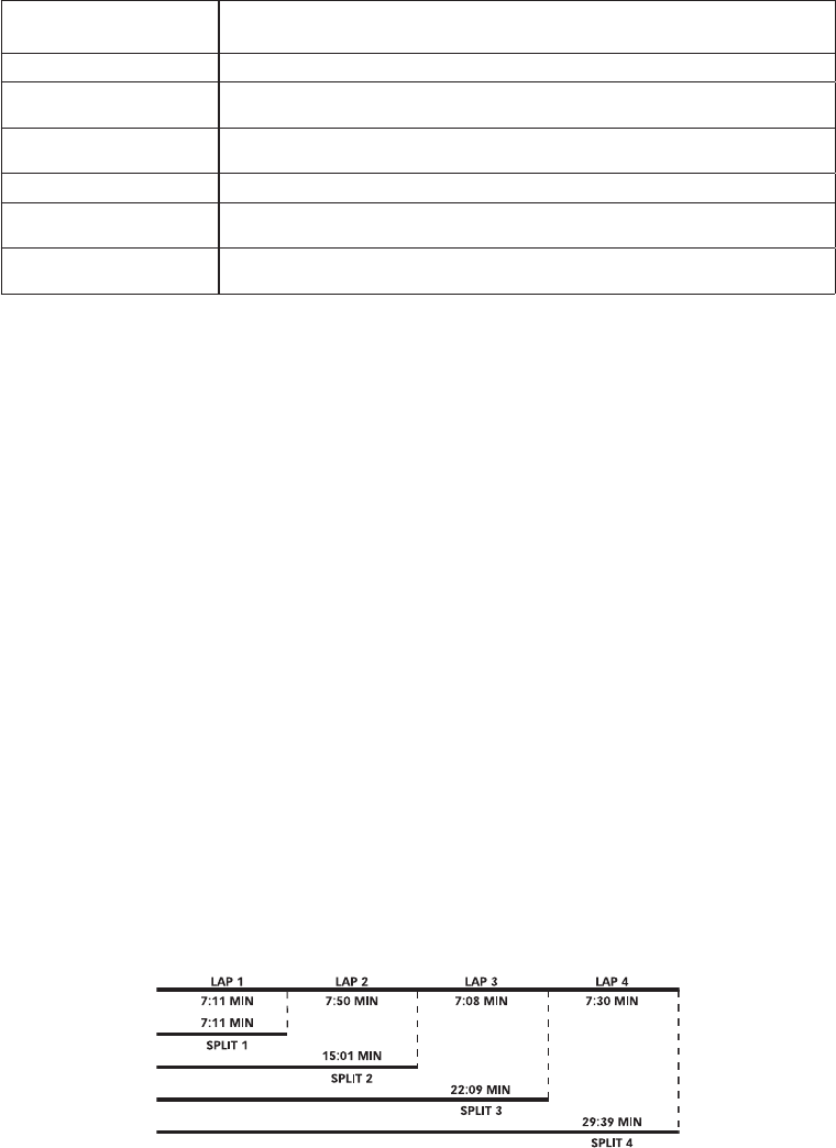 • Chronographe : Le chronographe enregistre des segments de temps pendant la durée de votre activité.