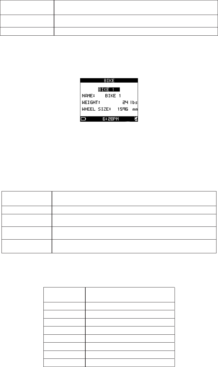 NOM Saisissez le nom du vélo. Celui-ci peut contenir jusqu’à 8 caractères. Appuyez sur