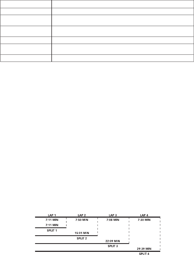 • Vuelta: El tiempo de vuelta registra el tiempo o duración de segmentos individuales de su ejercicio.