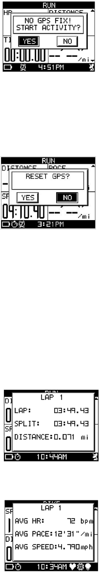 Si selecciona NO, el cronógrafo no iniciará. Desplácese a un lugar con vista despejada del cielo donde el reloj