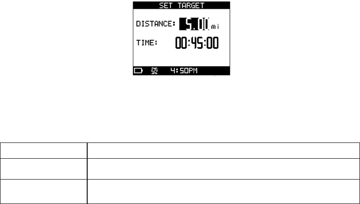 2. Oprima q para seleccionar Set Target:Time/Dist, después oprima 8 . Aparece la pantalla de ajustar