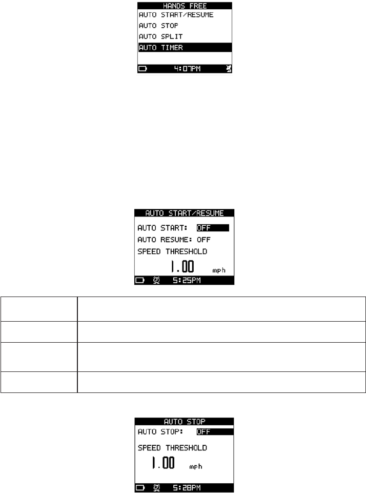 Los ajustes de Manos Libres controlan el inicio, parada y secciones automáticas en el cronómetro.