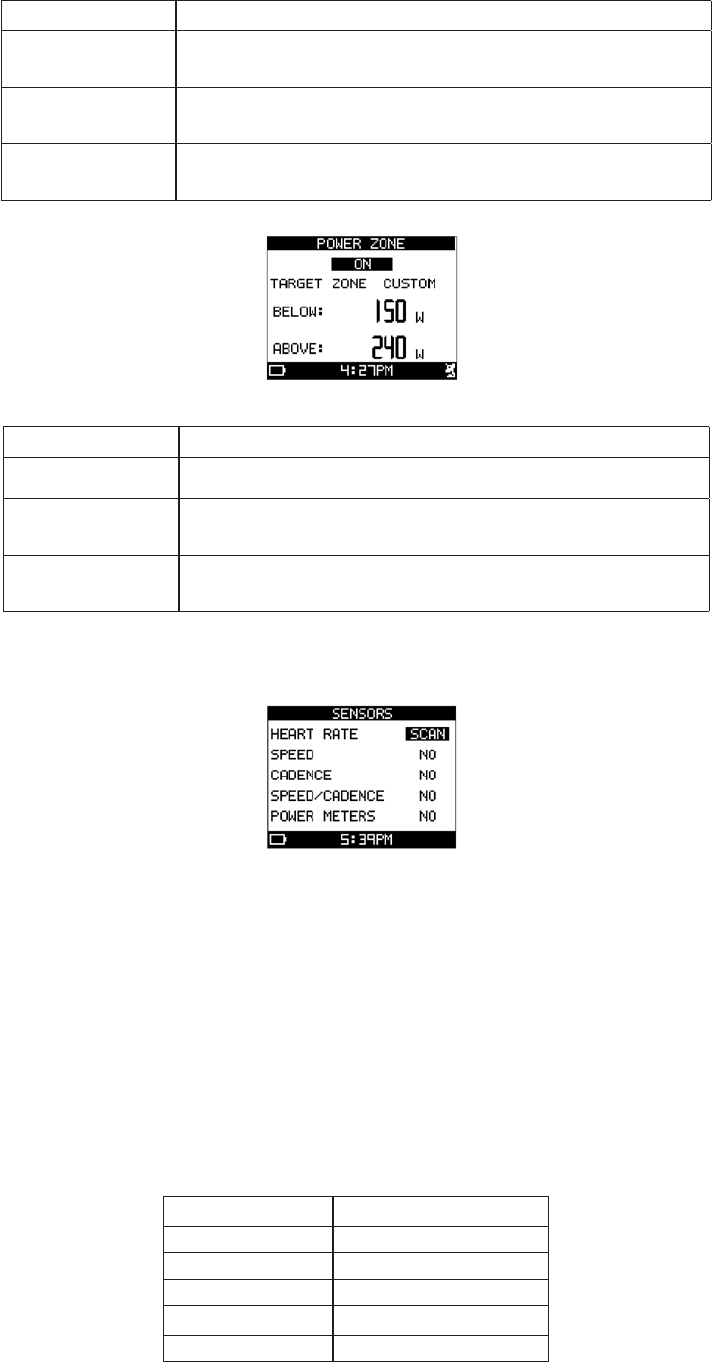 ZONA CADENCIA Seleccione ON para alertarlo cuando las rpm de los pedales de la bicicleta estén