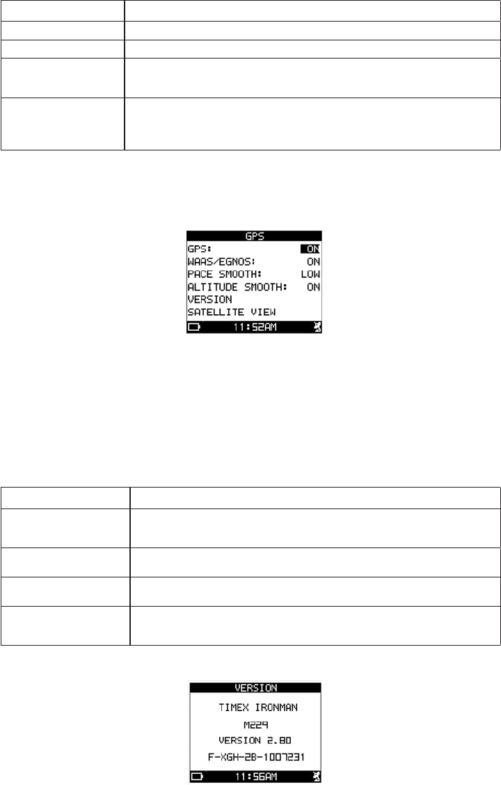 Configura las opciones para el GPS, ver la información de la versión del dispositivo y ver los satélites. Usted