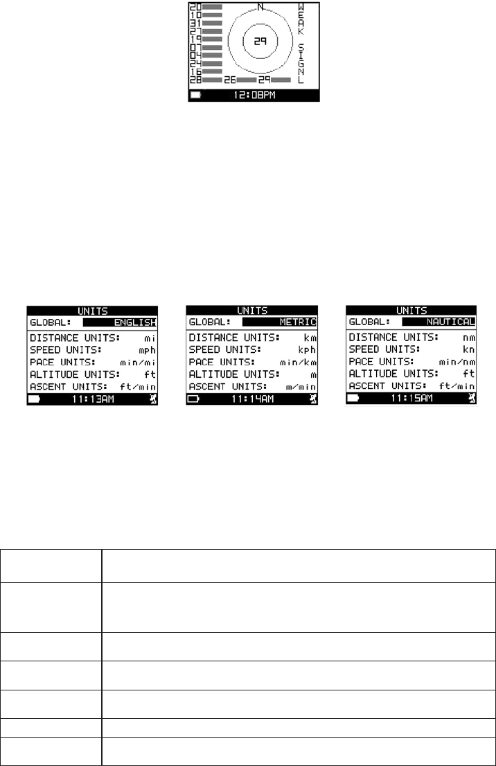 GLOBAL Seleccione IMPERIAL, MÉTRICA o NÁUTICA. Esto cambia todas las unidades