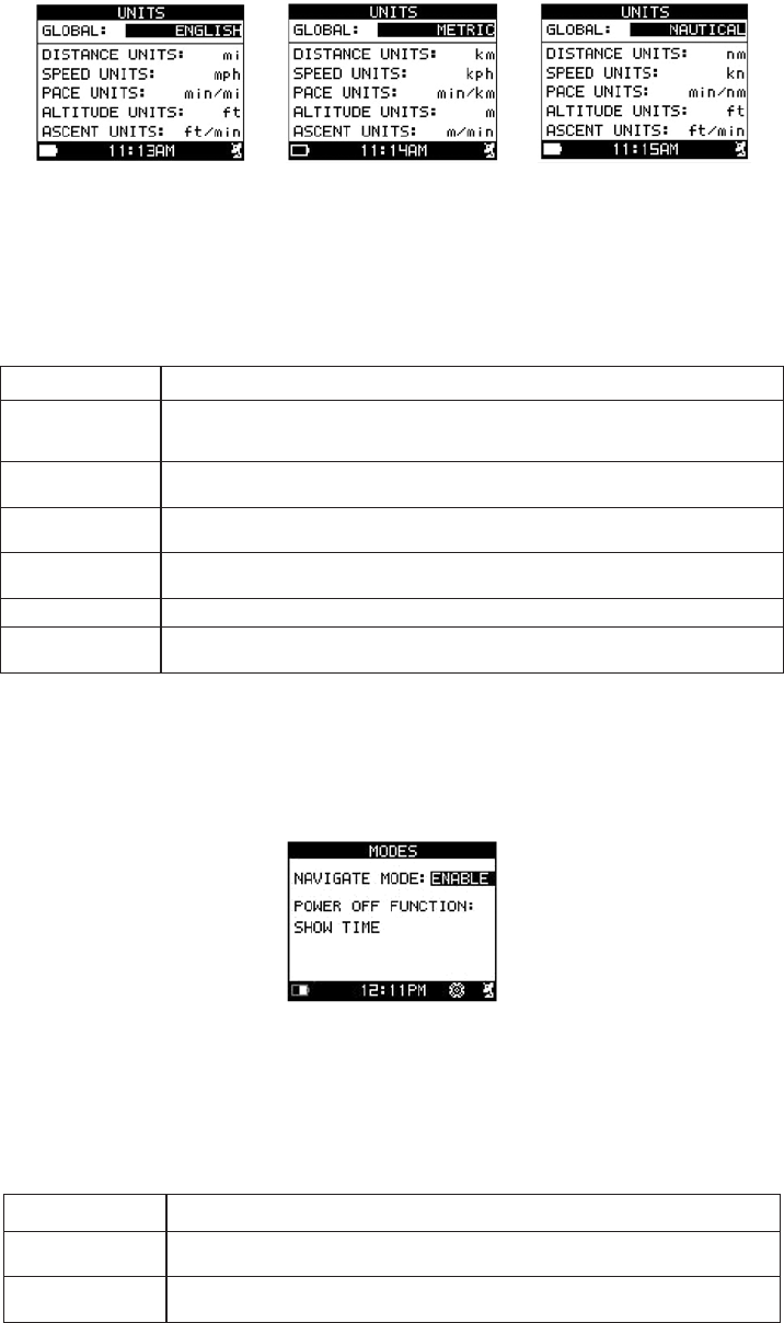 GLOBAL Select ENGLISH, METRIC, or NAUTICAL. This globally changes all units listed below.