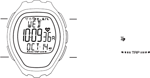 w Het stopwatchpictogram geeft aan dat het horloge de tijd