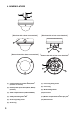 5. INSTALLATION Notes · Do not remove the protective sheet attached to the dome cover until installation work is completed. Damage to the dome cover could result if the protective sheet is removed during installation. · A safety wire for connecting between the unit and ceiling is not supplied. Hook a safety wire for the unit itself to the safety wire-fixing hole (M4, useful thread depth = 6 mm (0.24 inch)) as needed.