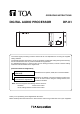 2. GENERAL DESCRIPTION The TOA DP-K1 is a 3U rack mountable Digital Audio Processor. It features an Automatic Resonance Control function that automatically generates an optimum filter curve to improve sound clarity after measuring the acoustic characteristics in architectural space. All of this function and other acoustic signal processing functions such as compressor and delay are set by a PC using the supplied setting software.