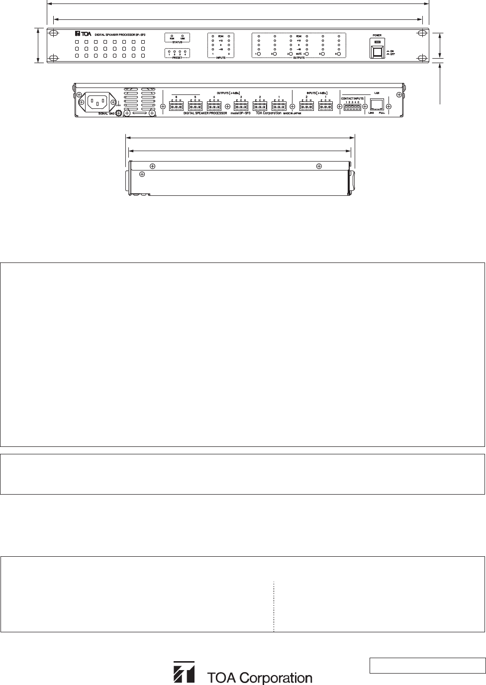 Any modifications made to this device that are not approved by TOA Corporation may void the authority