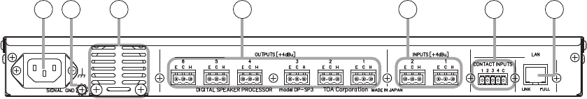 12.Outputterminals[OUTPUTS+4dBu,1−6]