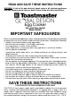 • Do not let cord hang over edge of table or counter or touch hot surfaces.