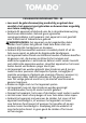COME ORDINARE GLI ACCESSORI IT All’indirizzo web www.tomado.com/support è possibile acquistare accessori e parti di ricambio. CONDIZIONI DI GARANZIA Su questo apparecchio vige una garanzia del produttore di 24 mesi. La garanzia è valida soltanto qualora il prodotto sia stato utilizzato in conformità alle istruzioni per l’uso e destinato ai fini a cui è preposto.