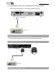 KM1075 Karaoke set 3. Connecting the karaoke set to a DVD player or home cinema set 3.1 Connecting the karaoke set to a DVD player with RCA AV output DVD player KM1075 Important!!! Follow the correct order of connection. Connect the RCA cable from the DVD player’s AV OUT to the karaoke set’s DVD connection. 3.2 Connecting the karaoke set to a home cinema with SCART AV output Important!!! If you make a SCART connection to your audio equipment, you must use the SCART adaptor with the DVD label.