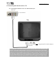 KM1075 Karaoke set 4. Connecting the karaoke set to a TV 4.1 Connecting the karaoke set to a TV with RCA AV input KM1075 TV connection Or to a SCART input using the IN/TV SCART adaptor supplied Important!!! The connection to the karaoke set actually takes over the function of the existing connection cables between your AV equipment and television. This means that you do not have to remove this connection if you want to watch a film or to play a game from your AV equipment.