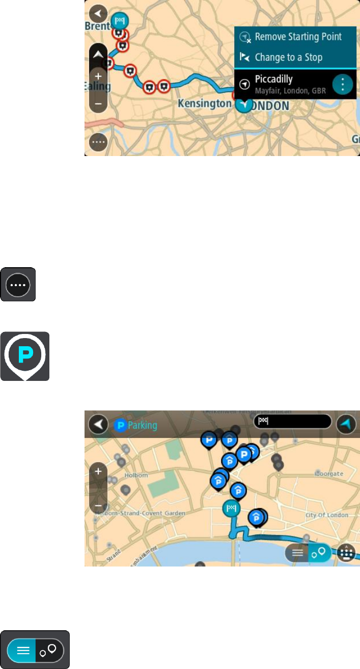Jeśli zaplanowano trasę, na mapie wyświetlą się parkingi w pobliżu Twojej pozycji docelowej.