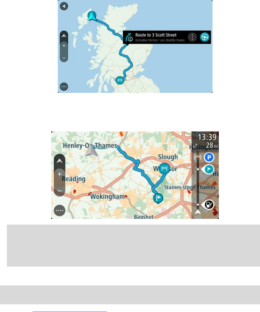 zaplanowana trasa. Nawigacja do celu podróży rozpoczyna się od aktualnej pozycji. Po