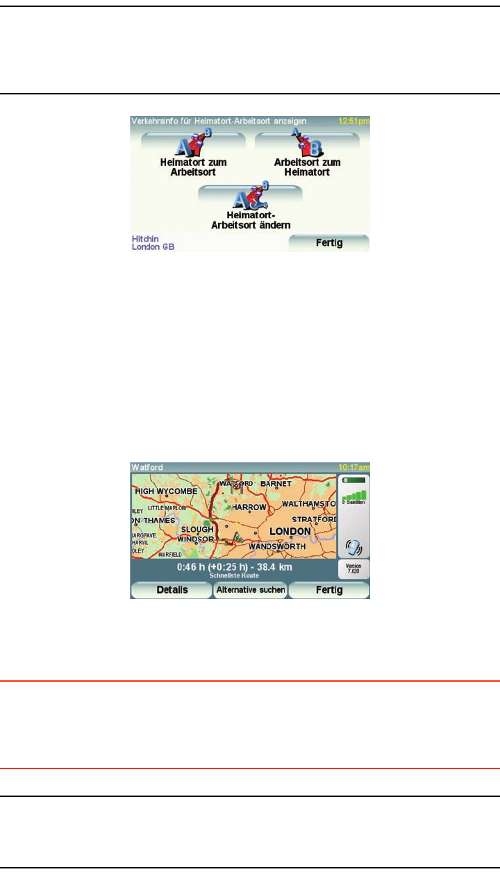 2. Tippen Sie auf Verkehrsinfo für Heimatort-Arbeitsort anzeigen.
